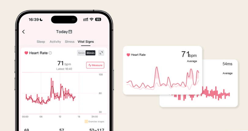 心拍数、心拍変動や活動データの傾向から「休憩のタイミング」や「緊張の傾向」をお知らせ